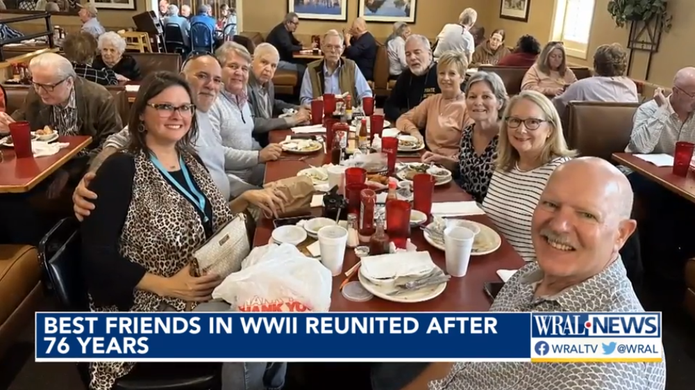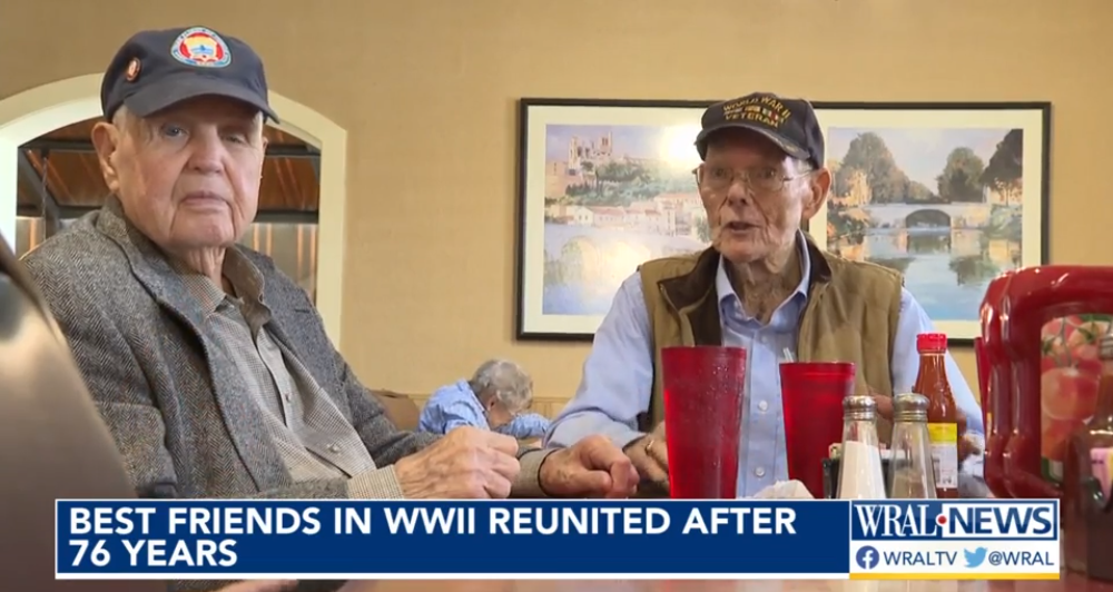 【华e生活编译】据WRAL报道,周五(17日),在达勒姆(Durham),两位76年未见的二战老兵举行了一次难忘的重聚。