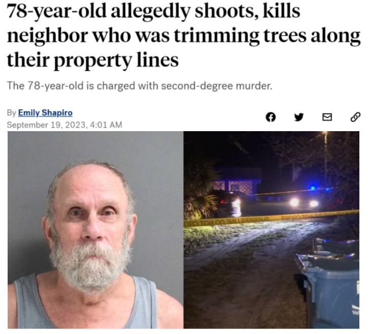 男子修剪隔壁过来的树枝 ,却被邻居一枪击毙