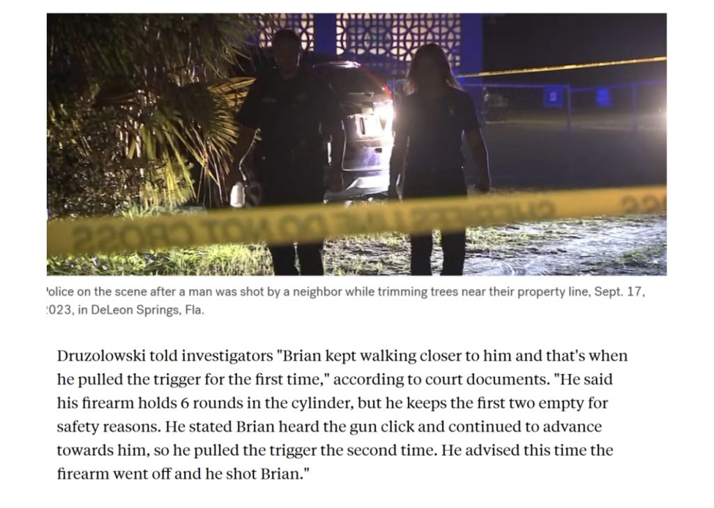 德鲁佐斯基(Druzolowski)称,当时自己已经警告邻居福特(Ford),远离自己的财产,而福特(Ford)不但没有听,在说了管好你自己的事儿后还说了很多脏话。