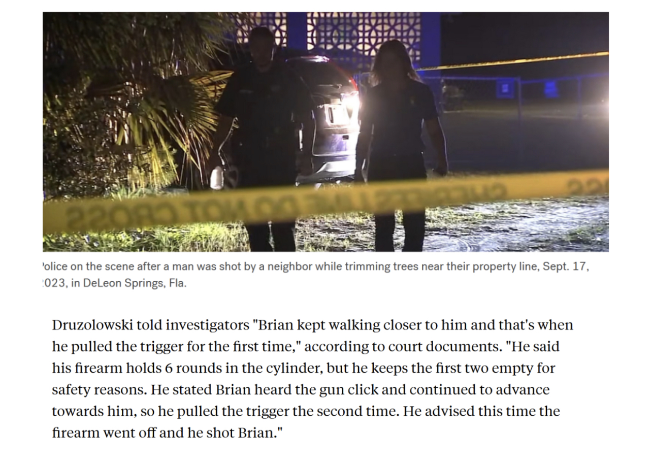 德鲁佐斯基(Druzolowski)称,当时自己已经警告邻居福特(Ford),远离自己的财产,而福特(Ford)不但没有听,在说了管好你自己的事儿后还说了很多脏话。