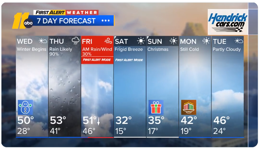 北卡州长宣布进入紧急状态,-10°C左右最低气温离历史记录差多远?