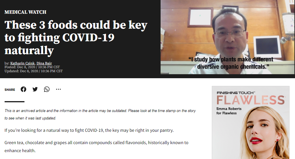 北卡教授谢德玉发现,绿茶和黑巧克力可抑制新冠病毒