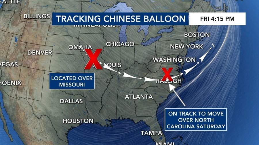 “流浪”气球正朝北卡飘来,军方研究将在大西洋上空击落