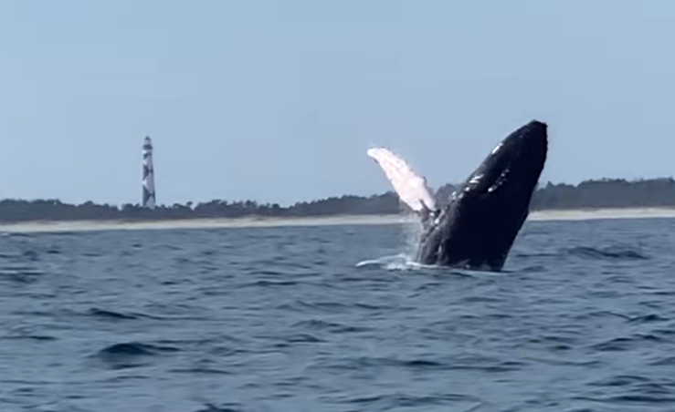 北卡渔民在赖特斯维尔海滩与鲸鱼近距离接触时惊呆了