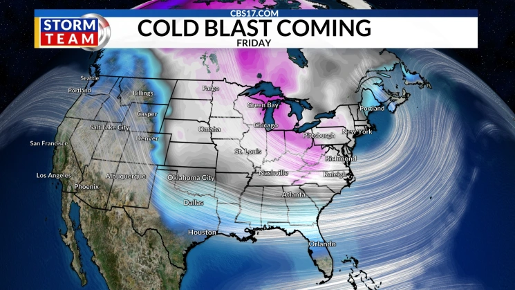 圣诞节那个周末北卡中部可能下雪,最低气温接近-10°C
