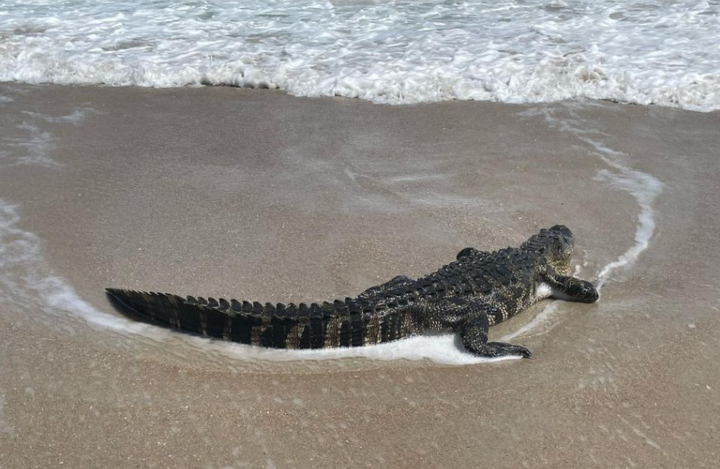 在北卡海岸马森波罗岛海滩惊现鳄鱼