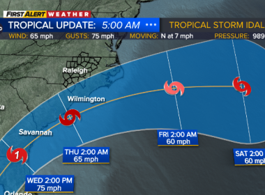 热带风暴伊达利亚正面扑向南北卡,预计周三晚间入境