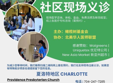 橄榄树基金会义诊第六载,今年九十月将分别在凯瑞和夏洛特举行