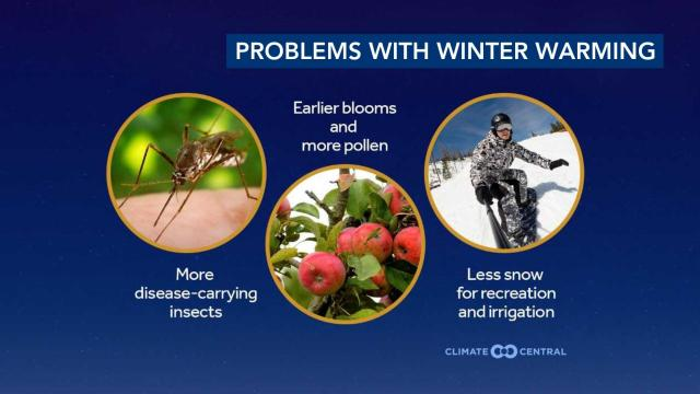 冬季气温温和会增加携带疾病昆虫的几率,灌溉用的雪会减少,花期和花粉会提前。
