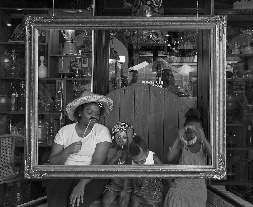 Description: 2013年凯瑞艺术节上,在一家艺术品店的门口偶遇一家坐在橱窗后面休息的母女四人,她们悠闲羞涩的神情引起我的注意,我不失时机的按下了快门。