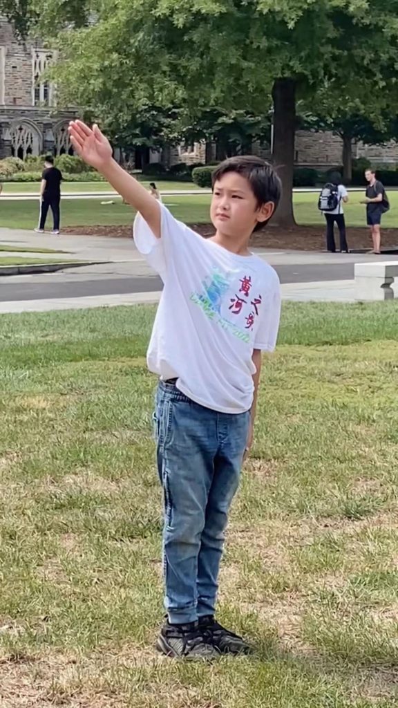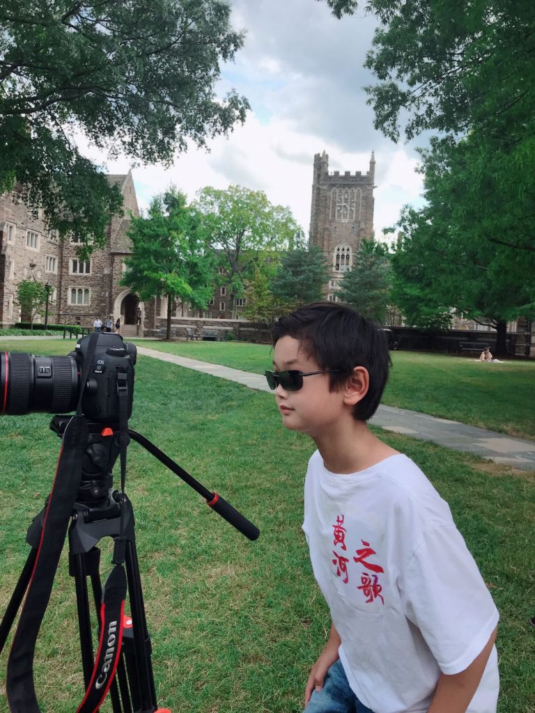 今年8月,“中华民族一家亲,同心共筑中国梦”——全球百名华人青少年唱响新时代《黄河之歌》公益系列活动盛大启动。美国北卡作为海外参拍的一个站点近日完成拍摄,4年级学生Grant Chen和另外4位北卡儿童,在全球闻名的杜克大学校园完成了实景拍摄。