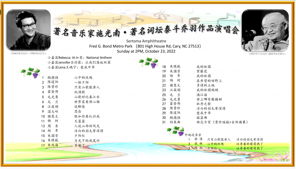 高歌缅怀乔老爷,传唱致敬施光南——北卡歌唱俱乐部深秋主题歌会侧记