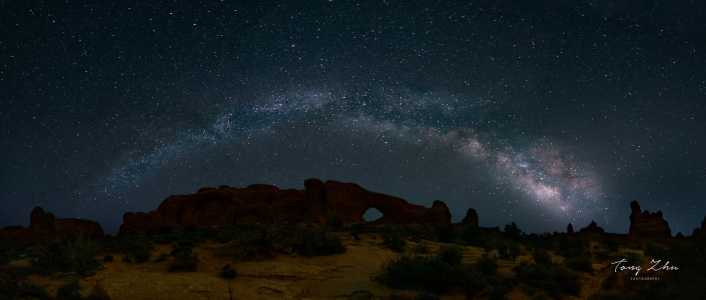 Description: 本片摄于2023年4月的Arches National Park,由数张单片拼接以显示完整银拱及拱门自然景观。