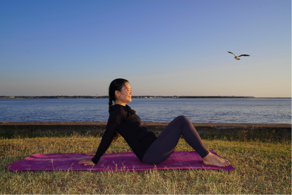 Description: 拍摄地点:北卡橡树岛卡斯韦尔堡海边 拍摄时间:2023年9月4日 主题详述:日出时分的海边,业余酷爱瑜伽的女主偶遇在此采风的摄影爱好者,两人合作留下此时此地的美景佳人组照。借喻太阳神和钢琴曲《水边的阿狄丽娜》的意境,表达女主对爱情的美好向往。