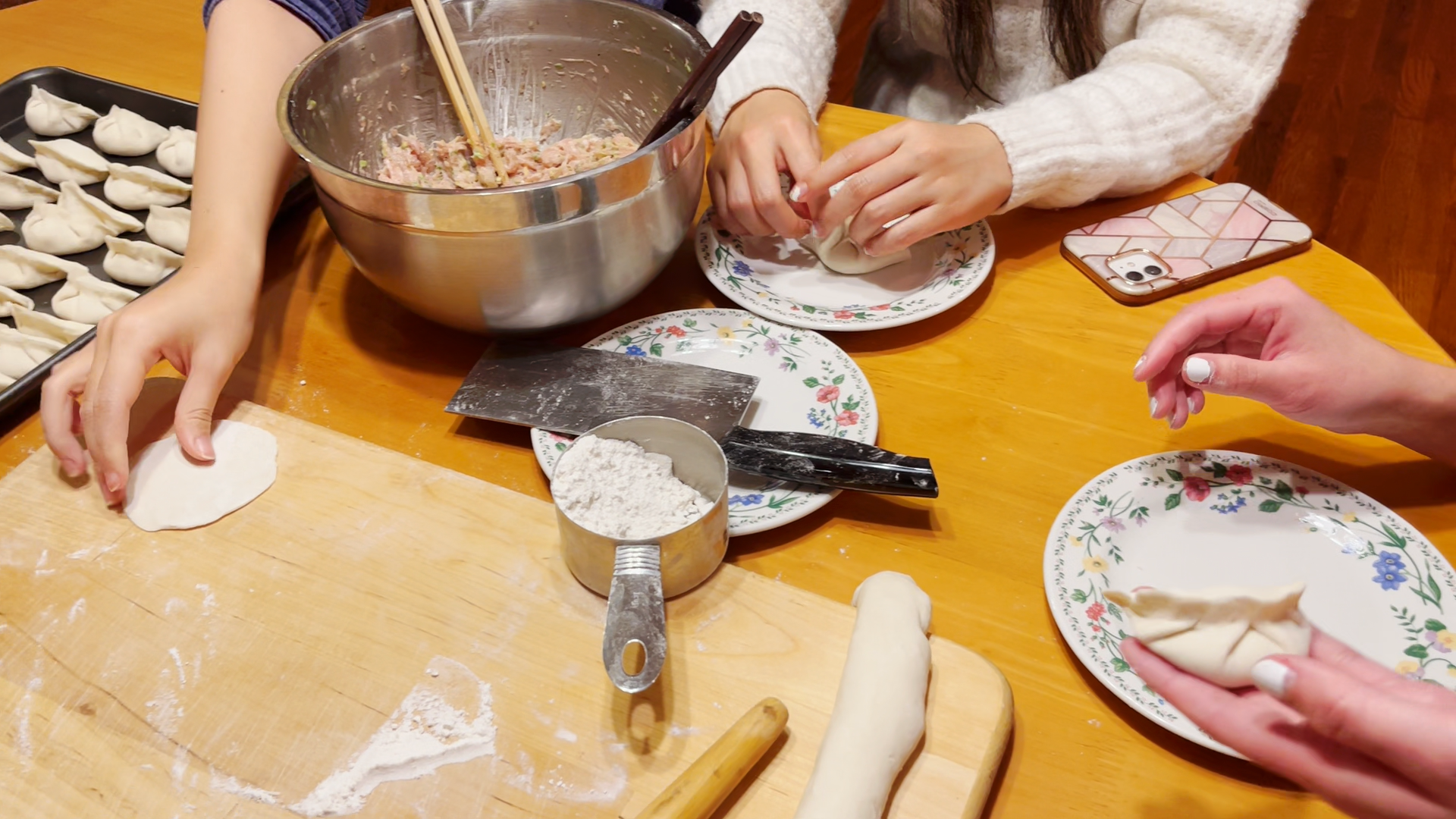 中国人过年有吃饺子的习俗。蟹肉饺子和锅贴是我们一家人的最爱。带三个在美国出生的女儿一起包饺子,不但给他们传授了中国最经典的美食文化,做了好吃的,同时还可以增进家人的感情。