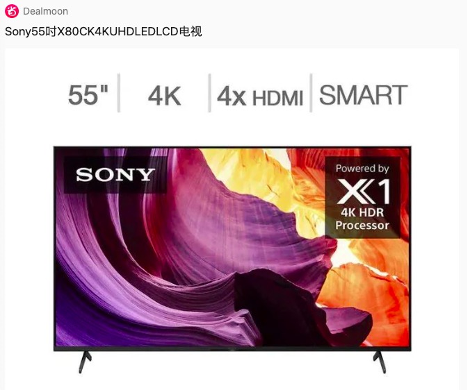 - Costco 现有 Sony 55吋 X80CK 4K UHD LED LCD 电视 黑五价$599.99。
