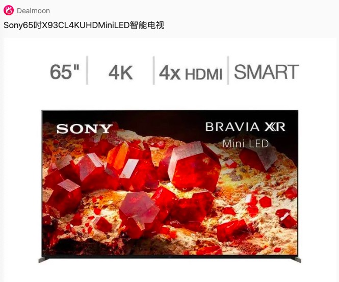 - Costco 现有 Sony 65吋 X93CL 4K UHD Mini LED 智能电视 ,黑五价$1599.99(原价$1699.99)。