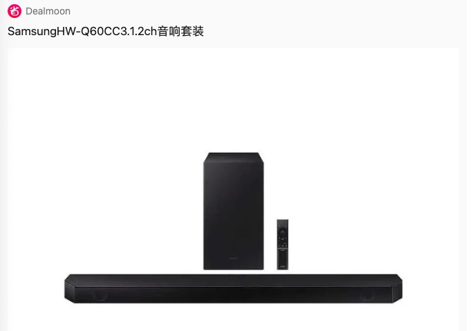 - Costco 现有 Samsung HW-Q60CC 3.1.2 ch 音响套装 ,黑五价$279.99(原价$449.99)。