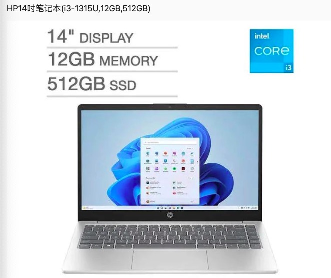 - Costco 现有 HP 14吋 笔记本(i3-1315U, 12GB, 512GB) ,黑五价$349.99(原价$499.99)。