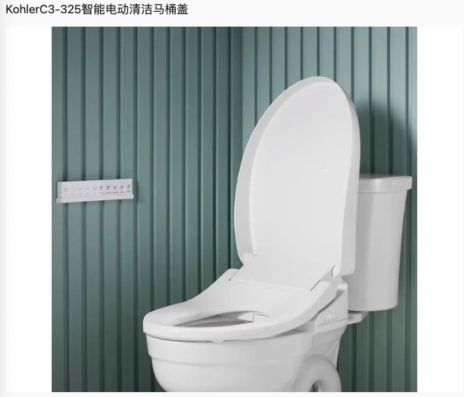 - Costco 现有 Kohler C3-325 智能电动清洁马桶盖 ,黑五价$269.99(原价$369.99)。