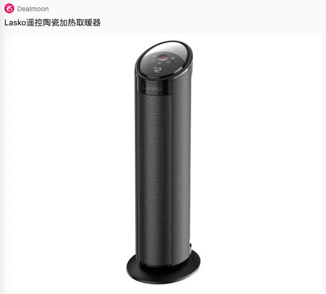 - Costco 现有 Lasko 遥控陶瓷加热取暖器 ,黑五价$39.99(原价$57.99)。