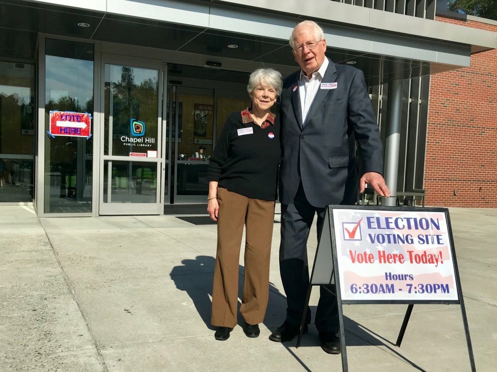 2018年,大卫夫妇在竞选投票点留影