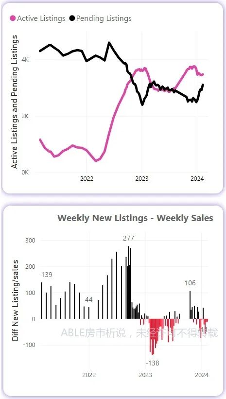 - Active Listing 7081,比上个星期的7093有小幅下降。