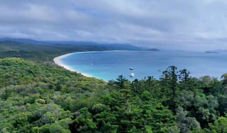 Whitehaven Beach以洁白的沙滩和澄澈的海水闻名。在视频里田震也专门强调了这些特点。