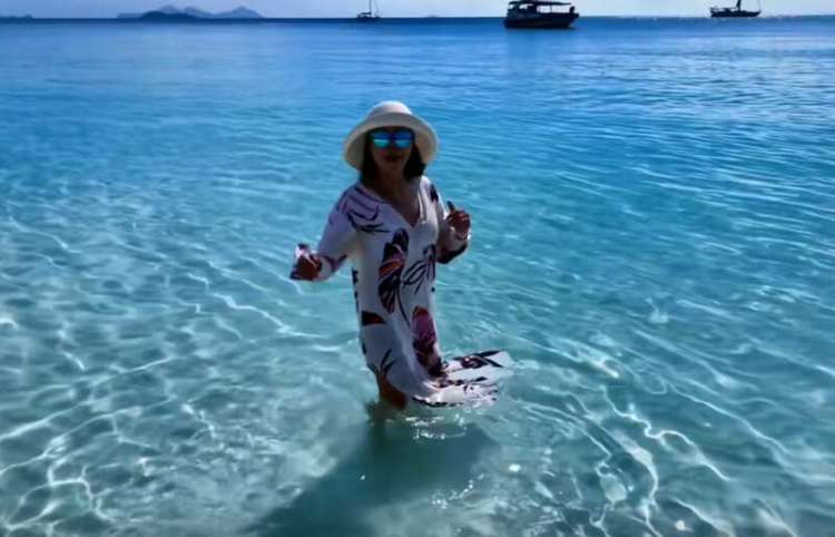 她的社交媒体上最新更新的视频就是她在沙滩游玩的场面,这处沙滩就是澳洲十分知名的Whitehaven Beach,位于昆士兰。