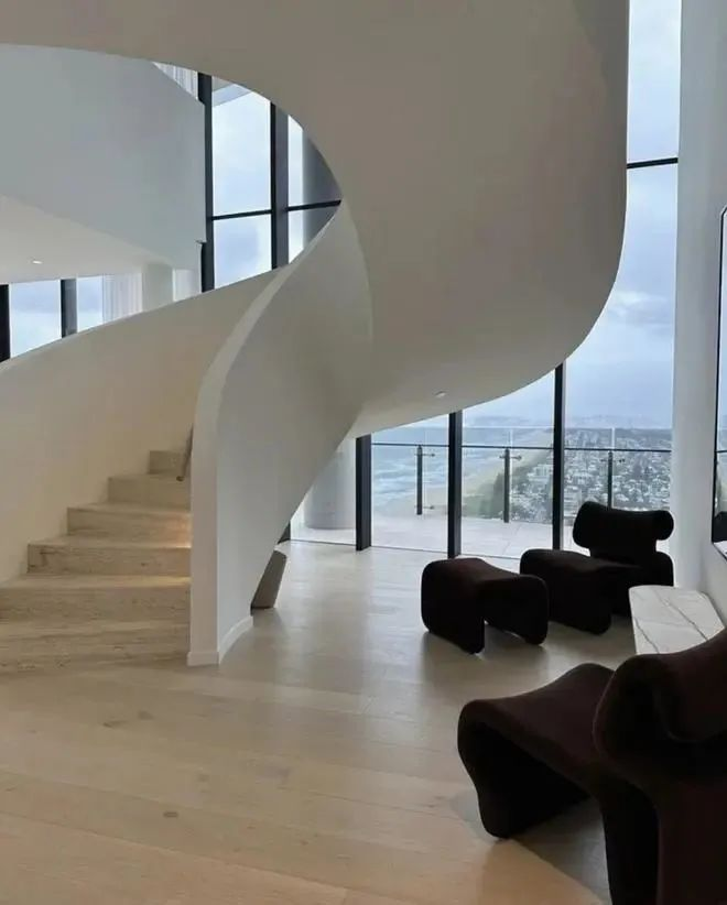 这套豪宅为复式两层,面积宽敞,楼层的间距很大,所以显得气派。豪宅采光很好,几乎在不同角度都能看到大海,顶层还有一个270度的海景房,能够从不同角度看到一望无际的南太平洋。
