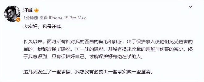 就连被传婚内出轨,汪峰也只不过是在其社交账号上发布了一篇澄清文章,本人根本就没有现身。