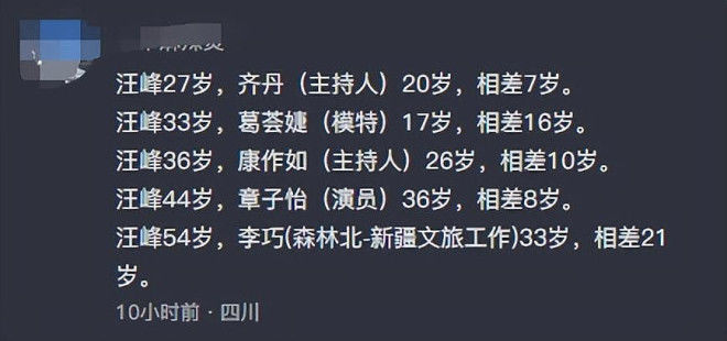 最重要的事,汪峰交往的女友,清一色都比他年轻,最小相差7岁,最大相差21岁。